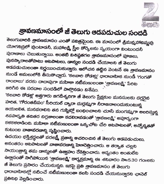 Zee Telugu has been constantly ranking as the Number 1 channel in the fiction genre. Adding another feather to its golden cap, it has now started two new fiction shows in its afternoon band. Gruha...Continue reading