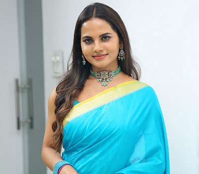Aashi Beautiful Stills in Blue Saree, HD Gallery