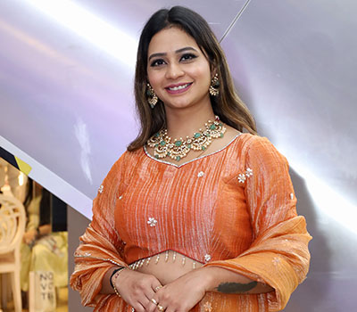 Teja Koneru in Orange Lehenga Choli, HD Gallery